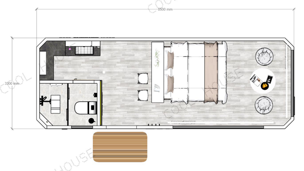長:8.5M 寬3.3M 高3.2M 建筑面積:28㎡